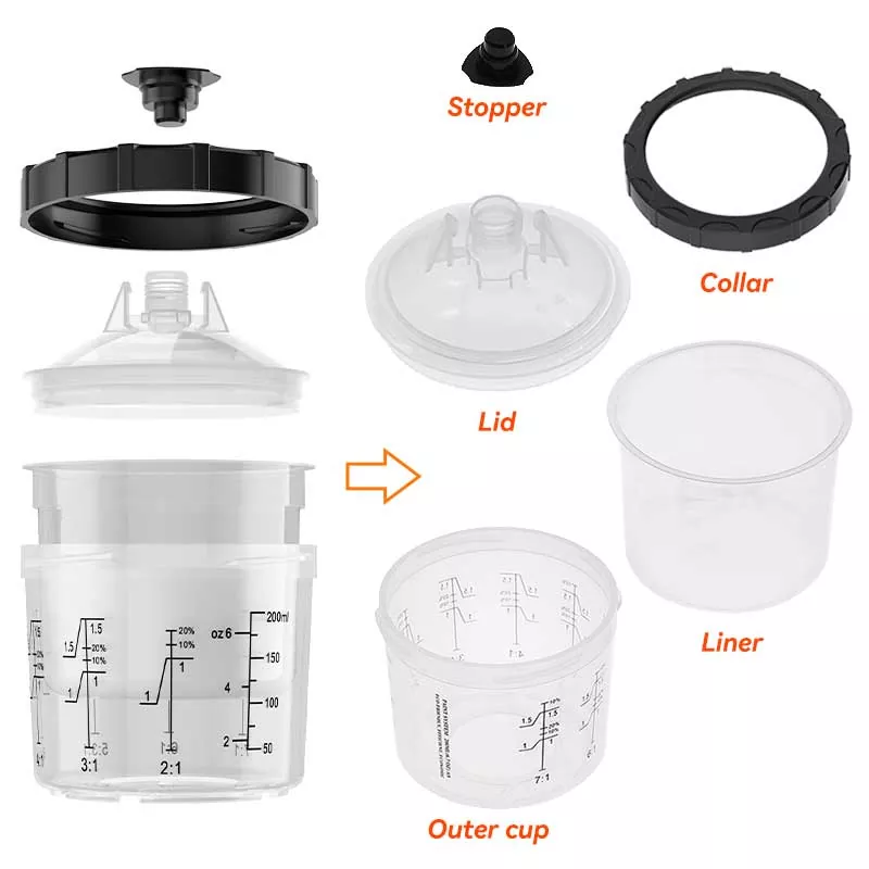 Šis produktas iš esmės pakeičia tradicinį „Gravity Feed“ taurę, nes jis ne tik taupo daugiau dažų, bet ir pagerina dažymo efektyvumą. Tiksliau, išskirtinis automatinės spiralės, esančios įdėklo, dizainas, kai dažymas daro dažus visiškai panaudotus; Tuo tarpu greitas fiksavimo ir įdėklų pakeitimo dizainas vengia plauti puodelį, todėl tapybos užduotis bus atlikta efektyviai ir pakartotinai. Mes turime beveik visų prekės ženklų purškimo ginklų adapterius, kad patenkintume įvairių purškiamų pistoleto entuziastų patirties poreikius. Adapteris pagamintas iš nerūdijančio plieno, atsparaus dažyti koroziją ir labai patvari. Tvirtas įdėklo ir dangčio derinys užtikrina, kad taurės sistema dažais nenuils dažų, ir palaiko ilgalaikį nenaudojamų dažų laikymą, kad būtų išvengta atliekų.