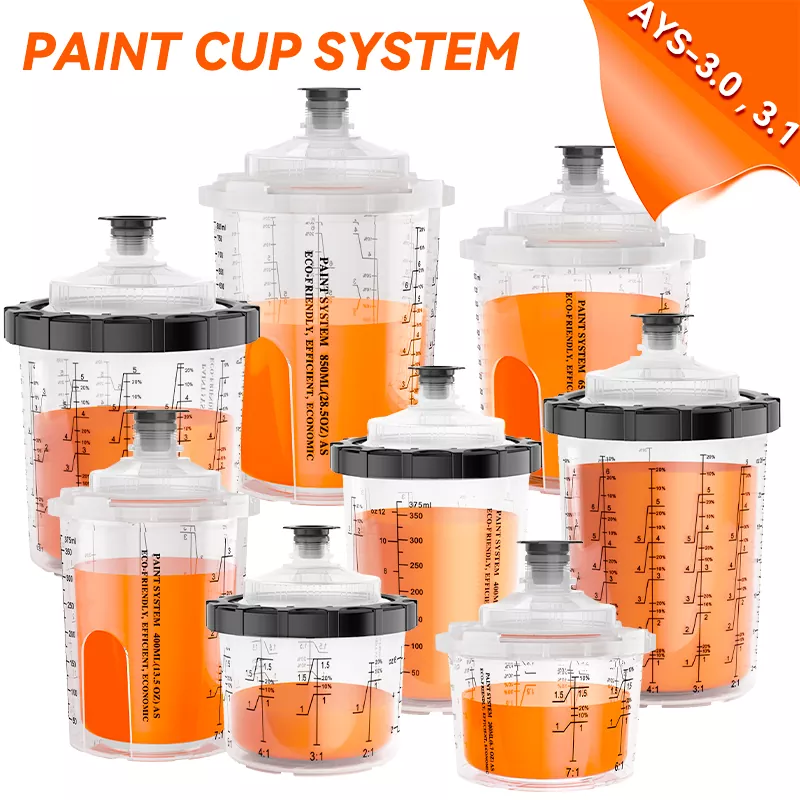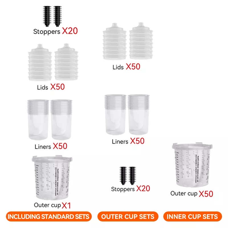 Vienkartinis purškimo pistoleto taurė suteikia įvairių talpos galimybių (įskaitant 200 ml, 400 ml, 650 ml, 850 ml), kuri gali patenkinti skirtingus purškimo poreikius, pradedant nuo 1 skydelio remonto iki 4 skalūnų remonto, ir sumažinti taurės pakeitimo dažnį.