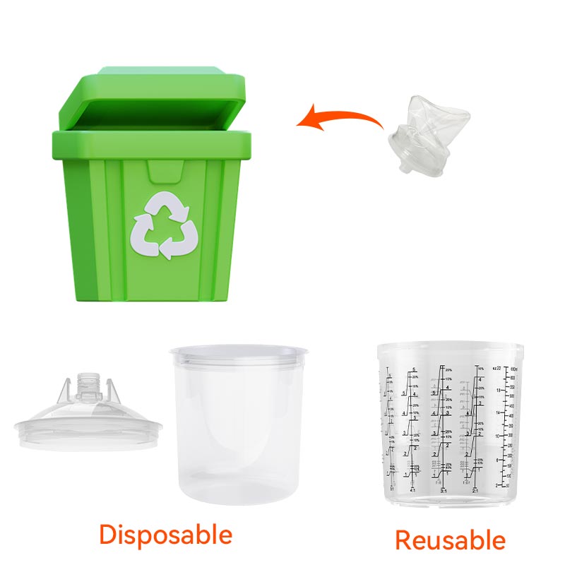 • Lengvas dizainas sumažina nuovargį:Sveriantis tik trečdalį tradicinių metalinių puodelių,Vienkartiniai purškimo pistoletų puodeliaižymiai sumažina rankų įtampą ilgai naudojant.