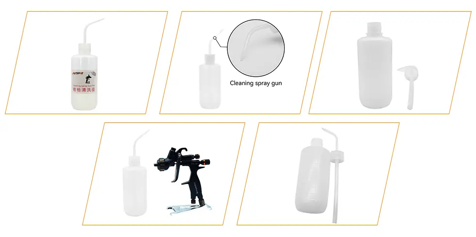 „Ayspat“ purškimo pistoleto plovimo puodas yra efektyvus purškimo pistoleto valymo įrankis, turintis puikų valymo efektą. Tai gali greitai nuplauti dažus, likusius purškimo pistolete, o tai gali geriau apsaugoti tikslias purškimo pistoleto dalis. Purškimo pistoleto plovimo puodą lengva valdyti, o skysčio srauto intensyvumą ir kryptį galima tiksliai valdyti suspaudžiant butelio korpusą. Po tapybos operacijos naudokite pistoleto plovimo puodą, kad įkeltumėte tirpiklį, kad praplautumėte sudėtingų vamzdžių dėmes purškimo pistoleto viduje, kuris gali išlaikyti purškimo pistoletą ir žymiai pratęsti jo tarnavimo laiką. Pistoleto skalbimo butelis yra pagamintas iš minkštos ir lengvos PP medžiagos, kuri yra atsparios korozijai tokiems tirpikliams kaip acetonas ir toluenas. Tai idealus sprendimas jūsų purškimo pistoleto priežiūrai.