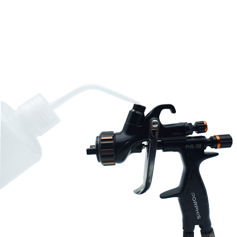 Purškimo pistoleto plovimo puode naudojamas unikalus išlenktas purkštukas, kuris gali giliai įsiskverbti į purškimo pistoletą ir greitai nuplėšti dažus ir nešvarumus nuo spragų, esančių purškimo pistoleto viduje. Gilus valymas gali efektyviai užkirsti kelią užsikimšimui, kurį sukelia džiovinti dažai, pagerinti purškimo efektyvumą ir prailginti purškimo pistoleto tarnavimo laiką.